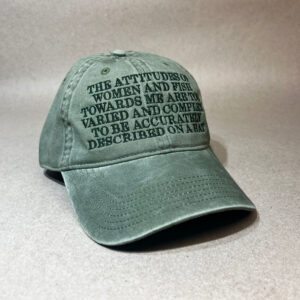 The attitudes of women and fish towards me are too varied and complex to be accurately described on a hat Cap