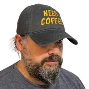 Need Coffee Baseball Cap, Embroidered Dad Hat, Unstructured Six Panel, Adjustable Strap, Coffee roasters, barista, coffee shops, Brewing Hats